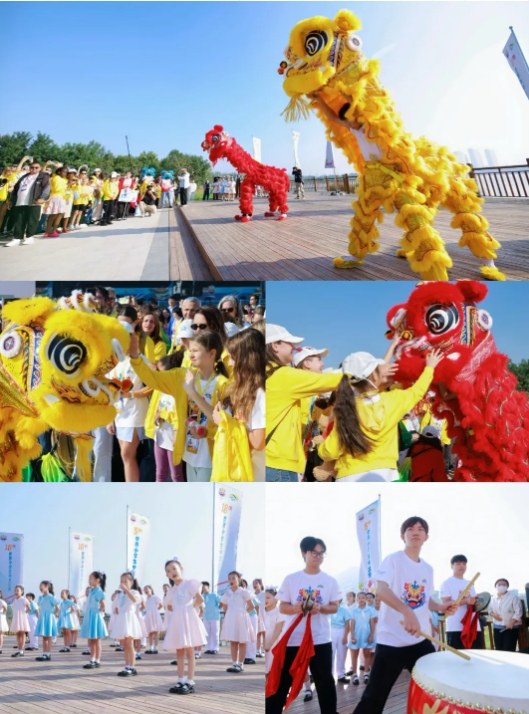 欢迎仪式在欢腾激昂的舞狮表演中拉开帷幕。金红相间的醒狮踩着欢快的鼓点腾跃起舞,与现场小选手亲切互动,展现中华优秀传统文化的魅力。中外儿童共同唱起旋律轻快的中文歌曲,用清澈纯真的声音搭建友谊桥梁,以中文韵律传递跨越国界的温暖情谊。随后,来自五大洲的选手代表用五彩手印绘就象征友谊与梦想的画卷,标志着本届“汉语桥”世界小学生中文秀正式启动。