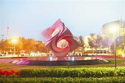从天津大礼堂出发,首先闯入参赛者视野的,便是友谊路与乐园道交口处的新地标——友谊公园内的“友谊之花”雕塑。