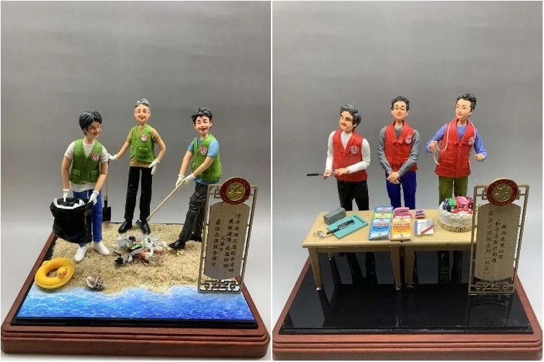 为制作出能体现天津市志愿服务优秀典型的面塑作品,创作团队深入了解10个先进典型的志愿服务事迹,明确创作方向与核心需求,并主动走访先进典型的工作地点,实地感受他们的工作环境,与他们面对面交流,捕捉最能体现其精神风貌的细节。最终历时2个多月,10 件展现天津志愿服务优秀典型的面塑作品顺利完成,它们不仅是对志愿服务精神的致敬,更是天津非遗在新时代创新发展的生动实践,让传统技艺与时代精神实现了深度融合。