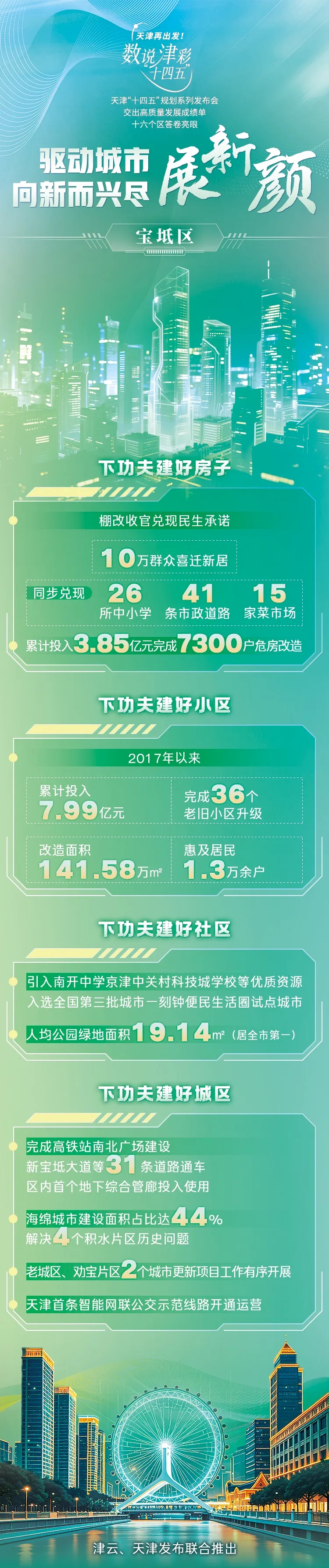 天津市坚持走内涵式发展道路,在盘活存量、做优增量、提升质量中加快培育新动能、更新旧动能。今天让我们一起来看“十四五”期间,天津各区在在提升城市治理方面的亮眼答卷!