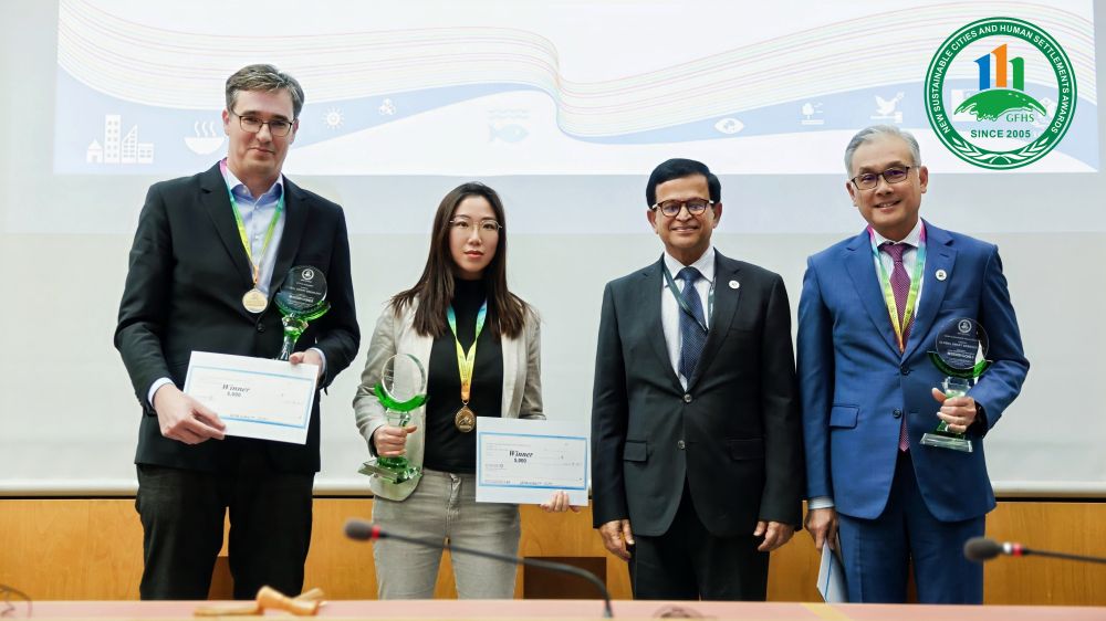 在日内瓦世界气象组织总部举行的2025“世界城市日”庆祝活动——第二十届全球人居环境论坛年会暨新可持续城市与人居环境奖盛典上,中新天津生态城被授予“新可持续城市与人居环境奖(新飒飒奖)”的“全球更绿智慧城市”称号。