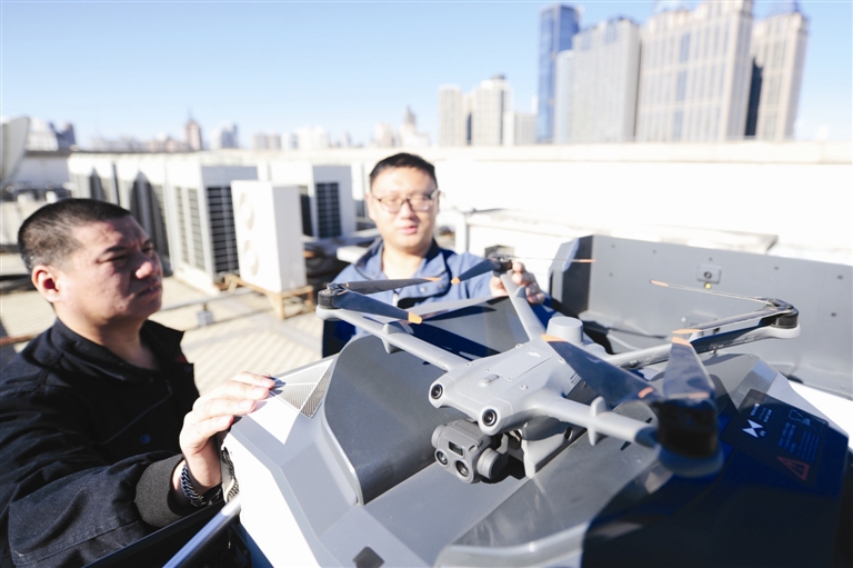 “嗡——”伴随着轻微的电机声,记者在民园广场屋顶见证了“空中鹰眼”的作业全过程。操控台前,飞控员郝正杰正熟练调整摇杆,无人机在他的操控下灵活转向,将周边3至4公里范围内的街巷胡同、景区角落尽收眼底。“它能实现全天候巡查,车辆难以抵达的狭窄胡同、屋顶平台等传统巡逻盲区,都能通过无人机精准覆盖。”郝正杰一边操作一边向记者介绍,一旦发现流动商贩占道、景区流量异常等情况,可立即拍照取证并同步上报,实现“发现—上报—处置”全流程闭环。