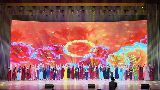 活动现场发布了《赶大营》主题歌曲,并用歌舞、乐器演奏、话剧等形式带来了《灿烂中国 多彩新疆》《送你一束沙枣花》《赶大营》等一系列节目。