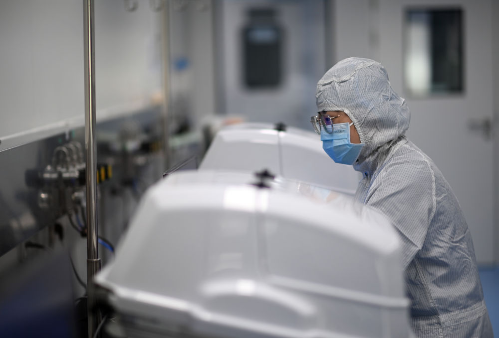3月21日,工作人员在合源生物科技(天津)有限公司生产基地细胞培养室内工作。新华社记者 赵子硕 摄