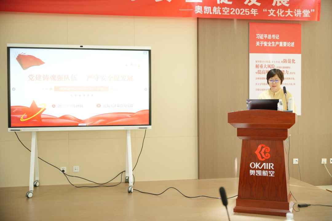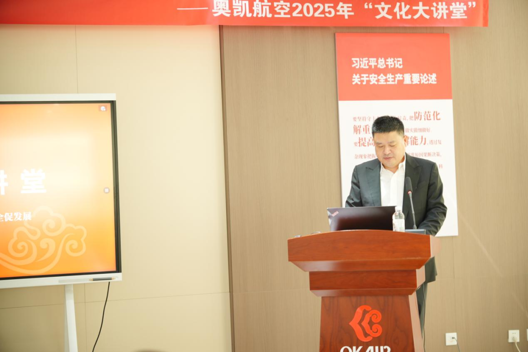 为深化廉政风险防控,推动公司党建工作与队伍建设深度融合,进一步促进空勤队伍思想稳定和整体安全水平提升,近日,奥凯航空有限公司党委举办“文化大讲堂”专题讲座。民航天津监管局党委副书记吴洁,天津港保税区“两新”组织党委书记、党建工作部部长张志强出席了此次活动。奥凯航空管理团队,党委班子成员,各支部书记,飞行、客舱、安保等关键岗位党员和员工代表,以及天津港保税区民用航空综合党委成员单位代表等70余人参加了讲座。