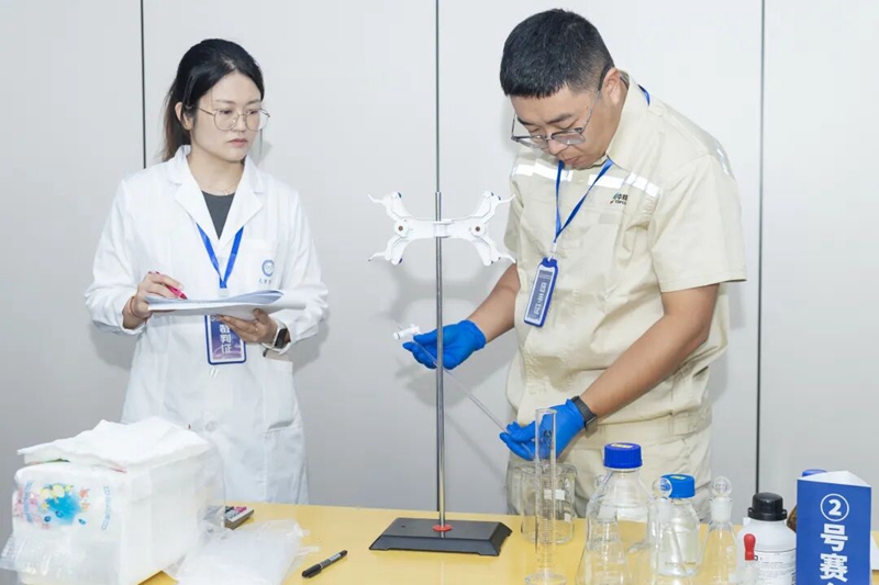 本次大赛分为理论笔试和实践操作,理论笔试从粮油检验的专业角度出发,主要考核选手们食品检测的相关理论知识储备,实践操作为酸价检测。随着比赛正式开始,赛场上选手们认真完成既定任务,所有操作流程均严格按照规定流程专业、规范、高效进行,动作一丝不苟,尽显食品检测人员专业的素养、高超的技艺以及扎实的专业功底。