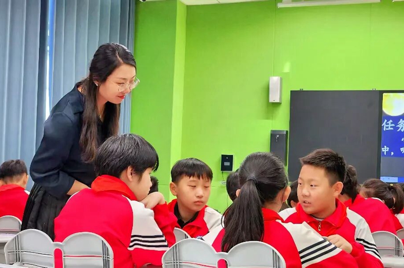 每月听课巡课时,她尤为关注教学创新。曾遇一位老师用歌曲导入《赵州桥》,学生眼中闪烁的求知欲让她意识到“细节即匠心”,随即在组内组织教学导入案例分享会,让多元教学策略碰撞出火花。师徒结对中,她带新教师磨达标课,从写逐字稿到预设4-5种学生回答,手把手拆解教学逻辑。记得一位新教师深夜加班磨课,张颖就陪她逐句调整提问方式,最终公开课上学生积极互动,她也在反思中快速成长。如今组里教案本上,不同颜色的批注是老师们互相“偷师”的痕迹——就像张颖常说的:“老枝新芽,各有风光。”