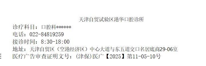 天津港保税区行政审批局医疗广告审查许可公示(天津自贸试验区港华口腔诊所)