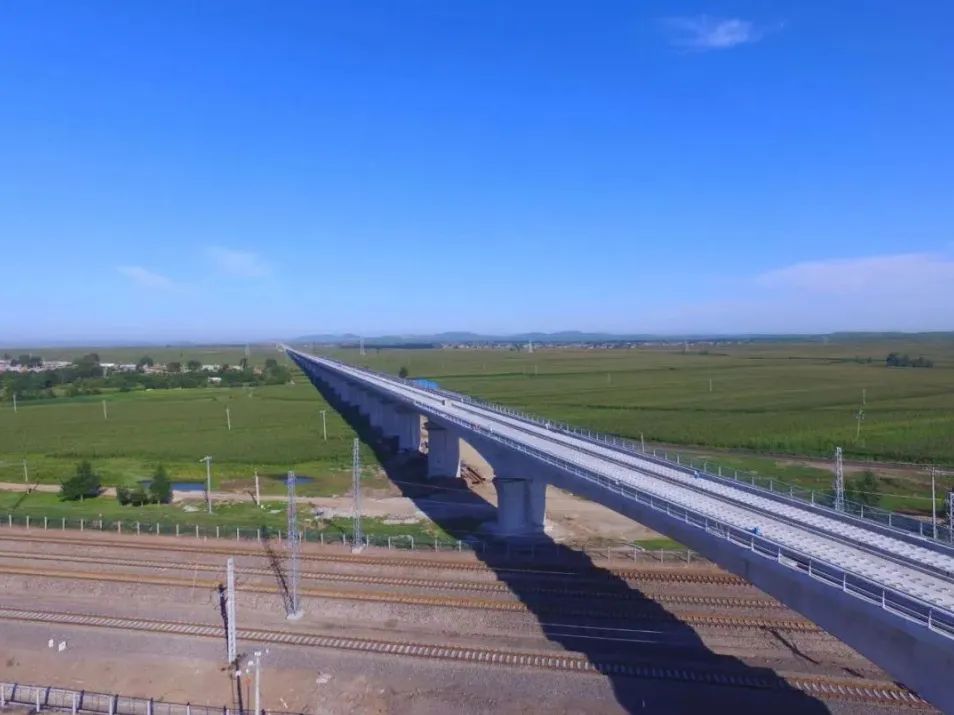 中国铁建大桥局承担其中30.907公里土建施工任务及预制架设箱梁615孔。施工过程中,首创全线采用混凝土新型基床结构,确保了寒冷地区轨道的平顺性。首次在高铁无砟段落引入了32米槽形梁,为降噪及槽型梁施工积累了经验。同时积极推行先进管理措施、努力研发技术创新,充分实施绿色施工,实现四节一环保,为打造中国高铁2.0标准奠定了基础。