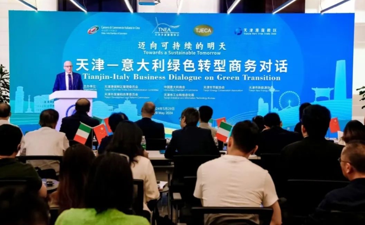5月29日,“天津—意大利绿色转型商务对话”在天津港保税区天津空港中欧中心成功举行。本次对话活动由天津港保税区管委会、中国意大利商会、天津市节能协会、天津市新能源协会联合主办,吸引了来自意大利与天津的重点用能企业、绿色能源投资运营商、绿色节能设备制造商、技术服务商等30余家企业参与。