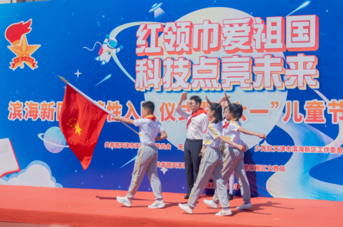 日前,滨海新区团委组织了一场以“红领巾爱祖国——科技点亮未来”2024年滨海新区示范性入队仪式暨“六一”儿童节主题队日活动,活动在滨海新区天津港保税区空港学校举行。