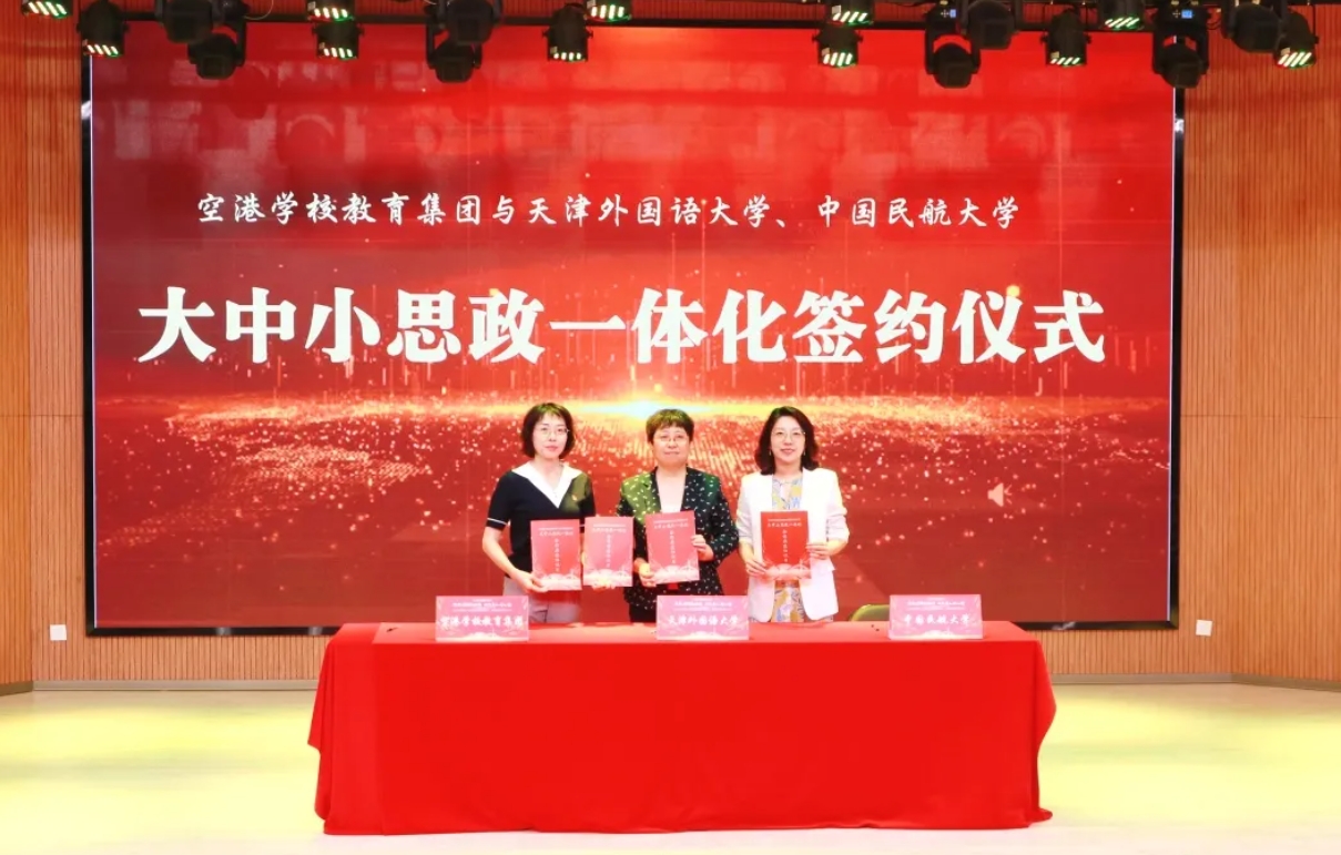 仪式上,天津外国语大学马克思主义学院院长郑海呐、中国民航大学马克思主义学院党委书记邓雪与保税区文教局相关负责同志,共同签署《大中小学思政一体化合作共建协议书》,标志着空港学校教育集团大中小学思政一体化合作共建项目正式启动。