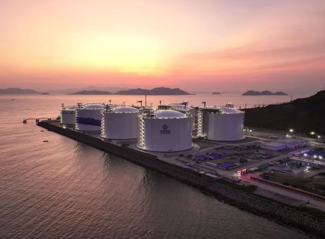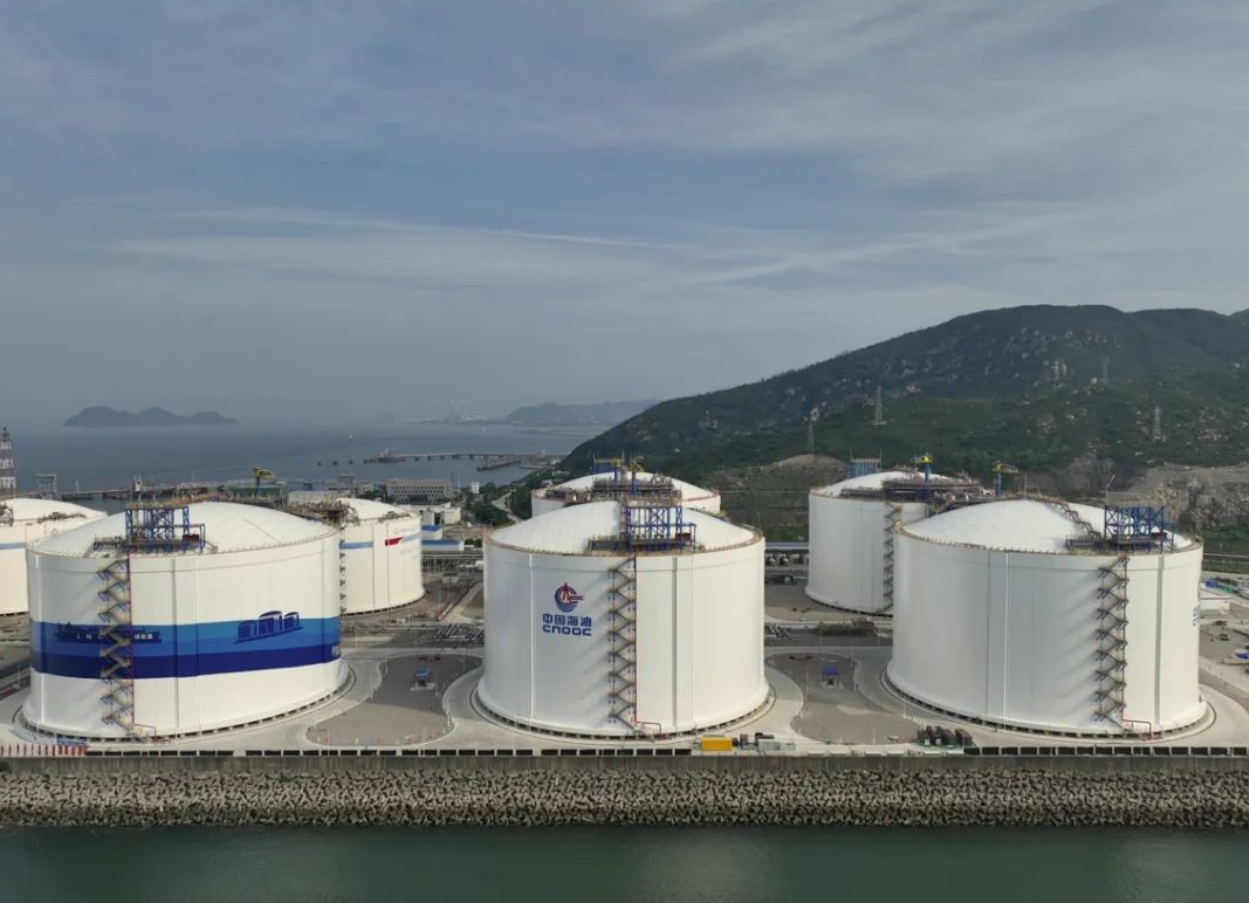 中国海油金湾“绿能港”项目位于广东省珠海市金湾区,包括已经投产的一期3座16万立方米液化天然气储罐和二期5座27万立方米液化天然气储罐,总罐容达183万立方米。二期项目被列为国家石油天然气基础设施重点工程,投产后中国海油金湾“绿能港”液化天然气总处理能力可达700万吨/年,折合气态天然气约100亿立方米,可满足3000万户居民一年的用气需求,约可发电500亿度,保障粤港澳大湾区和华南地区能源安全,成为华南地区规模最大的天然气储运基地。
