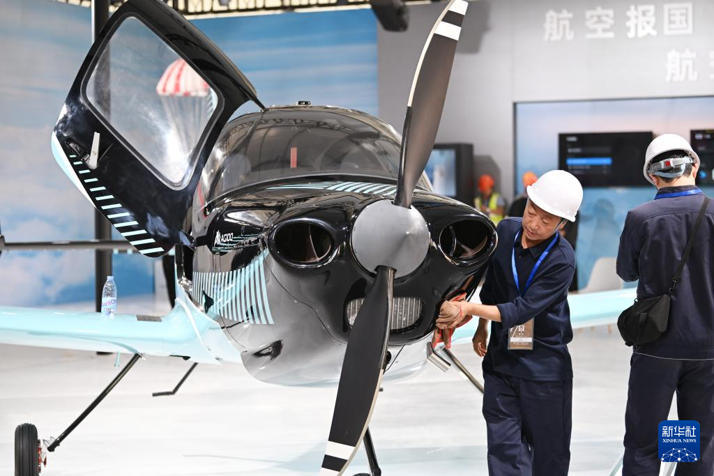 10月14日,工作人员在天津直博会低空经济馆内布展。 新华社
