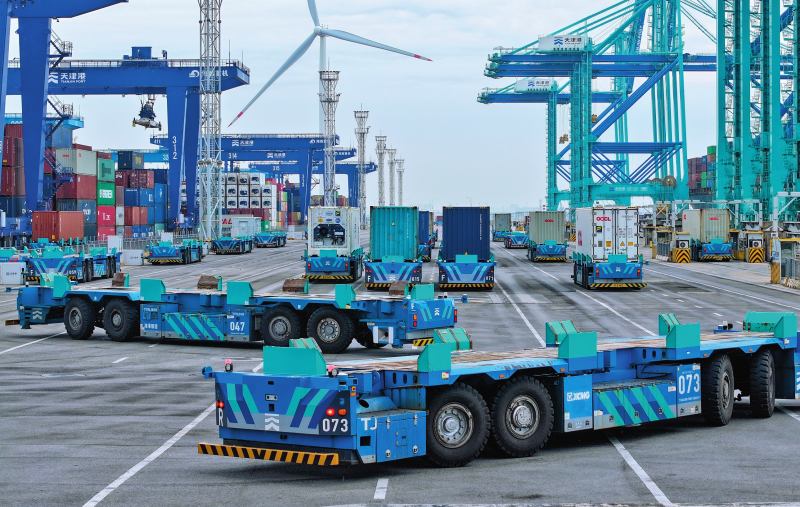 图片智能水平运输机器人行驶在天津港第二集装箱码头(2025年6月19日摄)赵子硕摄/本刊