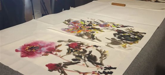 展览中,张双凤的彩墨作品根植东方写意精神,以牡丹为核心创作题材,跳出传统程式化表达,以灵动洒脱的彩墨和热烈奔放的设色,赋予牡丹当代精神意象,让传统花鸟画在当代语境中焕发全新生机;娜塔莉・科尔特的创作则以自然与生命为底色,将具象物象提炼为自由的线条、主观的色彩与富有呼吸感的肌理,用西方当代抽象艺术语言,诉说着对自然与生命最本真的热爱,东方彩墨的热烈与西方抽象的浪漫在此相映生辉,完美诠释了“花开并蒂”的主题内涵。
